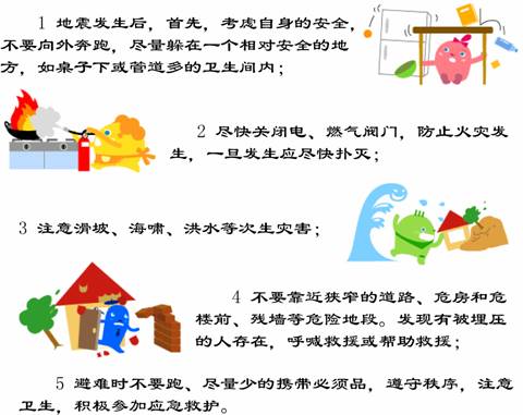 地震发生时要就近躲避,因地制宜地根据不同的情况作出不同的对策,