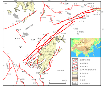 龙门山断裂带南起泸定、天全,向东北经灌县、茂汶、北川、广元北后进入陕西勉县一带,总体呈NE-SW向展布,长约500km,宽30-40km(见图),是一条北西盘向南东逆冲并兼有右旋走滑分量的断裂带。该断裂带是由龙门山后山断裂(由耿达一陇东断裂、茂汶一汶川断裂和青川断裂组成)、中央断裂(由盐井一五龙断裂、北川一映秀断裂和茶坝一林庵寺断裂组成)、山前断裂(由大川一双石断裂、灌县一安县断裂和江油断裂组成)和山前隐伏断裂等四条主干断裂及其控制的逆冲构造岩片(推覆体)组成的具有前展式发育特点的推覆构造带(唐荣昌等,1993;邓起东等,1994)。龙门山断裂带沿走向可以被分为北、中和南三个段落,北段:青川断裂、茶坝一林庵寺断裂和江油断裂;中段:茂汶一汶川断裂、北川一映秀断裂和灌县一安县断裂;南段:耿达一陇东断裂、盐井一五龙断裂和大川一双石断裂。