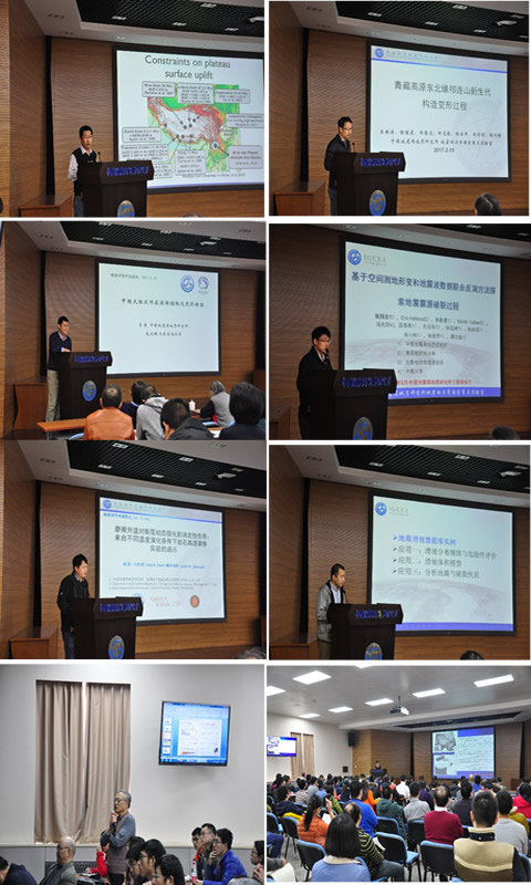 随后六位青年科研人员依次做了题为“青藏高原东缘幕式剥露过程及其地貌演化”、“青藏高原东北缘祁连山晚新生代变形过程”、“中国大陆及邻区深部结构及变形特征”、“基于空间测地形变数据和地震波数据联合反演方法探索地震震源破裂过程”、“摩擦升温对断层动态弱化的决定性作用-来自不同温度演化条件下岩石高速摩擦实验的启示”和“地震滑坡数据库的实例与应用”的报告,与同行交流了新成果和新思路。报告精彩纷呈,科研人员提问积极,讨论热烈,达到了预期效果。