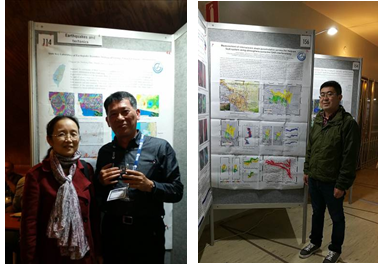 此次会议专题很多(如表1),我们主要挑选如下4个与自己研究领域更为密切和重要的专题进行聆听和交流。另外屈春燕研究员和宋小刚副研究员分别作了题为《Coseismic deformation of the 2016 South Taiwan Mw6.3 earthquake from InSAR and source slip inversion》和《Measurement of interseismic strain accumulation across the Haiyuan fault system using atmosphere-corrected SAR interferometry》的张贴报告,如图2。