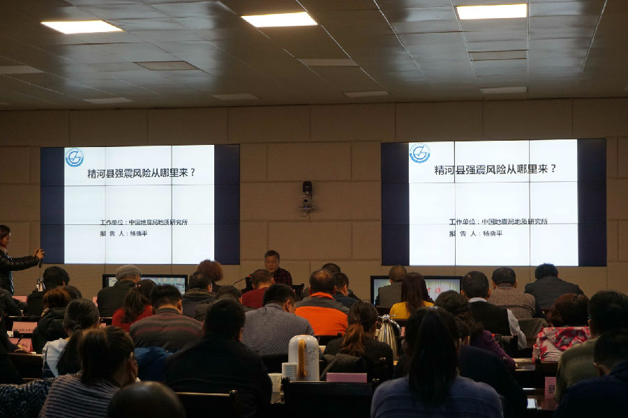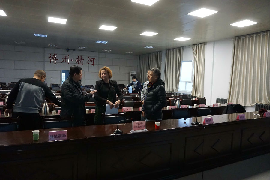 应精河县委、县政府邀请,365bet体育网址杨晓平研究员于2017年11月30日野外考察期间,在县党办会议中心作了《精河县强震风险从哪里来?》的地震科普报告视频会议,会场包括县党办会议中心主会场和乡、镇、场分会场,参会人员为县政府各部门及乡、镇、场负责人。会后,杨晓平研究员与精河县副县长阿米娜·阿不都热依木进行了进一步交流。