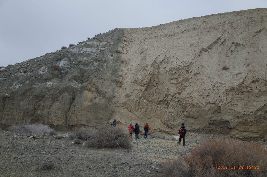 博—阿断裂是一条规模巨大的北西向断裂,起始于哈萨克斯坦境内沿阿拉湖西南侧的阿拉套山山前,从阿拉山口由北西向南东进入我国境内,在中国境内长约800km。断裂在阿拉山口-精河一带地貌清晰,断错不同级别的地貌面,形成不同类型的断错地貌。为查明博—阿断裂精河段晚第四纪活动特征,365bet体育网址和新疆地震局组成的联合考察组,在精河县委、县人民政府的支持和县地震局的协作下,于2017年11月22日—12月1日联合对博—阿断裂精河段开展了野外地质考察工作。工作组通过无人机航拍测绘,获得了高精度的数字地貌数据,采集了地貌面暴露年代测年样品,开挖了多个古地震探槽,对探槽揭示古地震事件进行了初步分析。