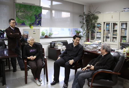 12月22日下午,中国地震局党组书记、局长郑国光来到地质所,与马瑾院士和邓起东院士座谈交流,并向他们致以新年的祝福。