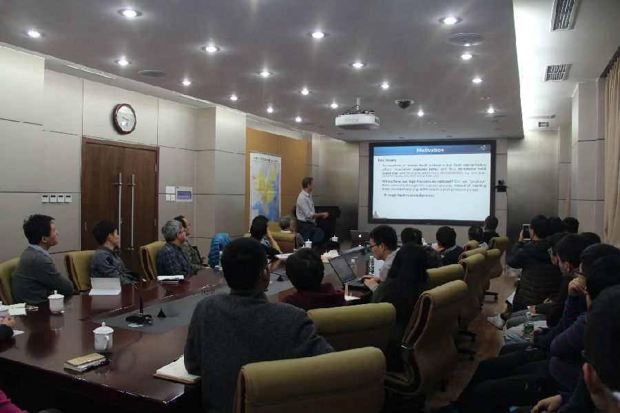 ??应365bet体育网址王丽凤博士和马胜利研究员的邀请,沙特国王科技大学教授、欧洲地球物理学会地震学部主席P. MartinMai于2017年11月23-26日访问了地质所,围绕地震动态破裂过程的数值模拟开展学术交流,并做了题为“RuptureDynamics and Seismic Radiation on Fractal Rough Faults”的学术报告。Mai教授还参观了构造物理实验室,与实验室人员进行了深入交流和讨论。