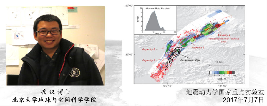 ?岳汉,2007年毕业于北京大学地球与空间科学学院获地球物理学士学位,2010年于北京大学获地球物理硕士学位,2014年于加州大学圣克鲁兹分校获博士学位,之后在加州理工学院地质与行星科学系从事博士后研究工作,2016年入选“千人计划”青年项目人选,2017年就职于北京大学地球与空间科学学院。其主要研究领域涉及应用不同类型数据对大地震时空演化特征的反演及地球深部结构特征的成像反演等,并在Nature、JGR、GRL等期刊发表十多篇相关论文。他曾获加州理工地震院长博士后奖学金、国家优秀自费留学奖学金、AGU优秀学生报告等奖项。